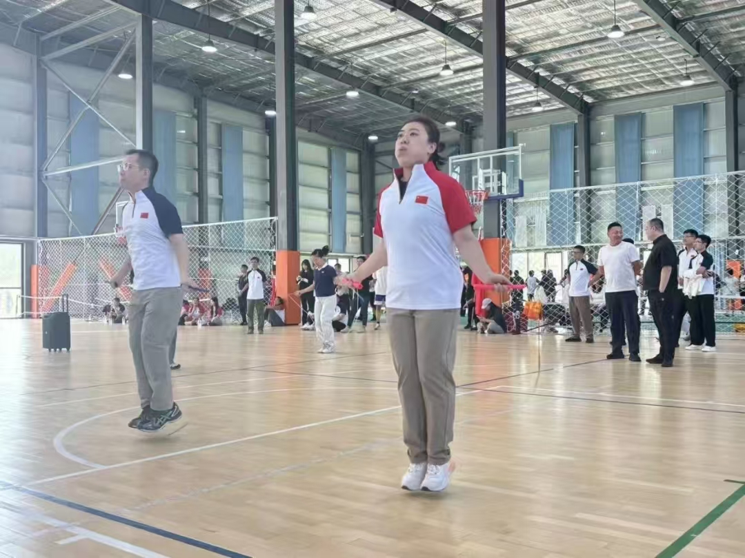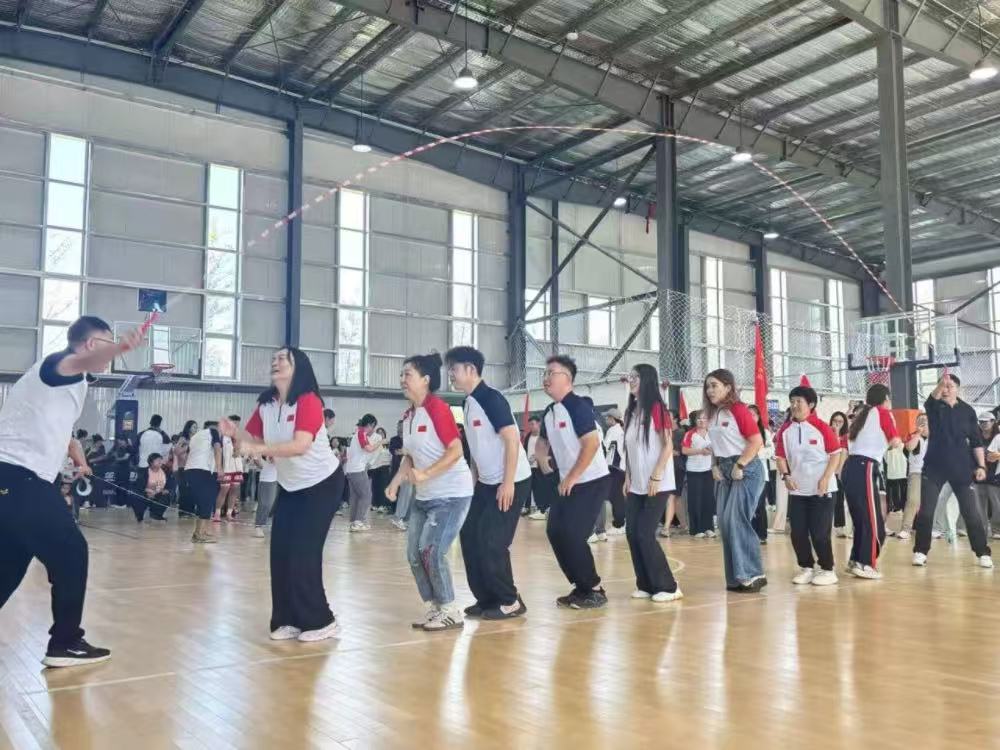 赛场上气氛热烈,“毛毛虫竞速”中老师们步伐一致、口号响亮,场面诙谐有趣;“珠行万里”需全神贯注、紧密配合,展现耐心与协作;“运球接力”和“多人跳绳”节奏紧张,配合流畅,点燃全场热情;而“飞盘掷准”与“一分钟跳绳”则突出个人技巧,精彩纷呈。