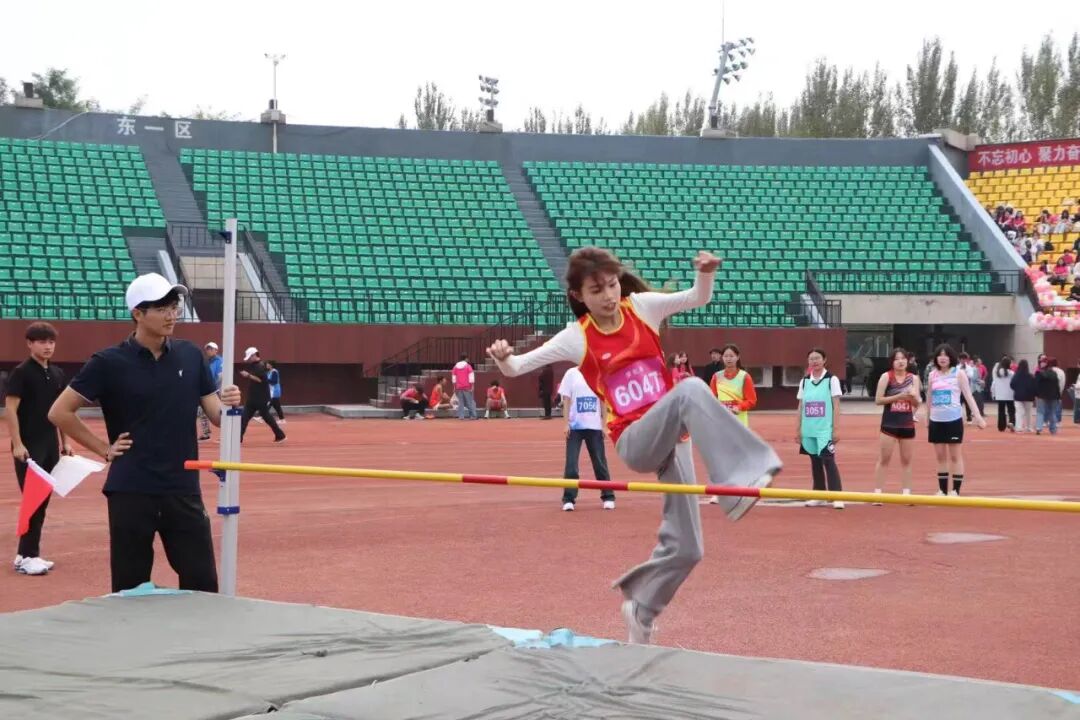 跳高场上,tyc33455cc太阳成集团选手助跑、起跳、腾空