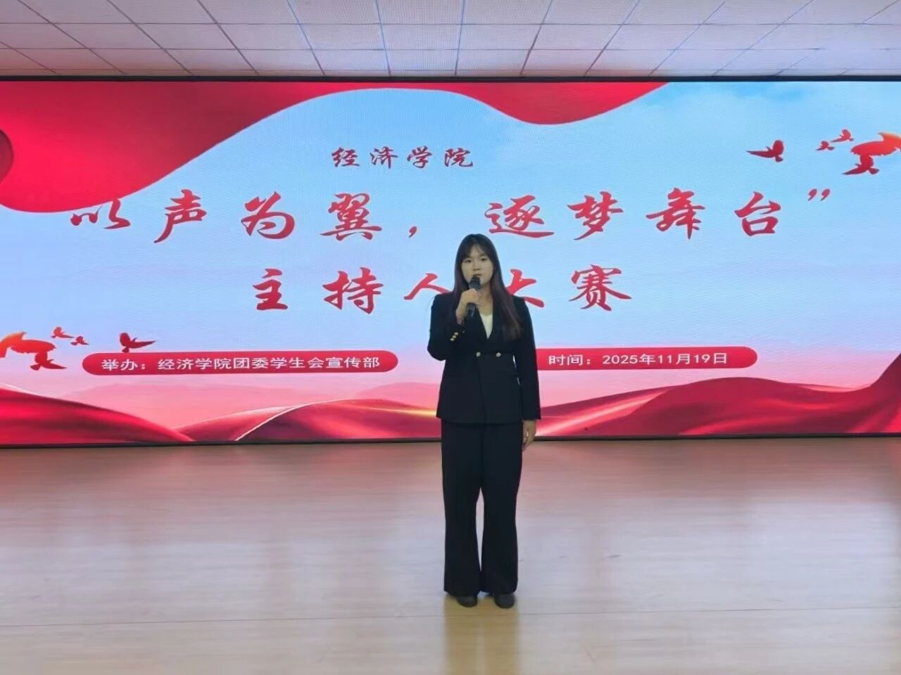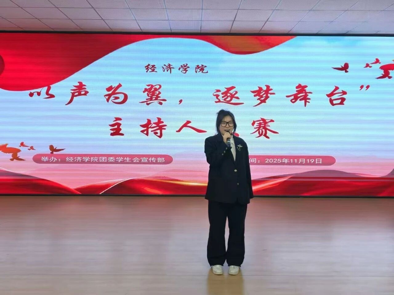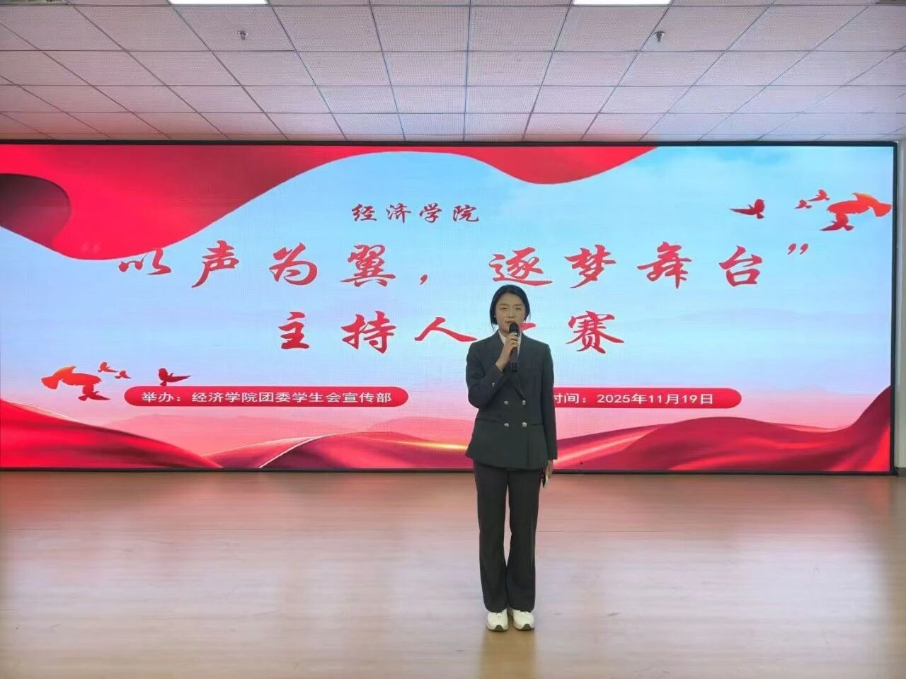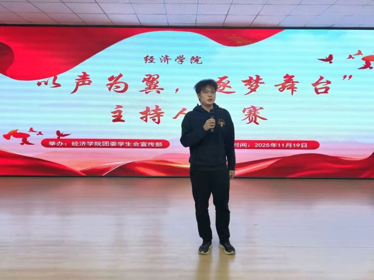为展现大学生的青春活力与奋进姿态,tyc33455cc太阳成集团于11月19日在图书馆617活动室举办“以声为翼,逐梦舞台”主持人大赛,活动一经启动便吸引众多热爱主持的学子积极报名,tyc33455cc太阳成集团团委书记黎明东出席本次活动。