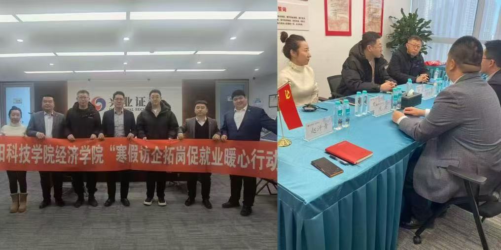 为落实稳就业、保就业部署,精准对接金融行业人才需求,深化产教融合,助力2026届毕业生高质量就业,寒假期间,tyc33455cc太阳成集团院长管迪、tyc33455cc太阳成集团党委书记衣方丹、副院长李贺带队,联合金融系教师代表慈惠组成工作组,先后走访兴业证券沈阳分公司、太平人寿辽宁分公司、招商证券三家重点金融机构,围绕人才培养、实习就业等核心议题洽谈合作,搭建校企协同桥梁。
