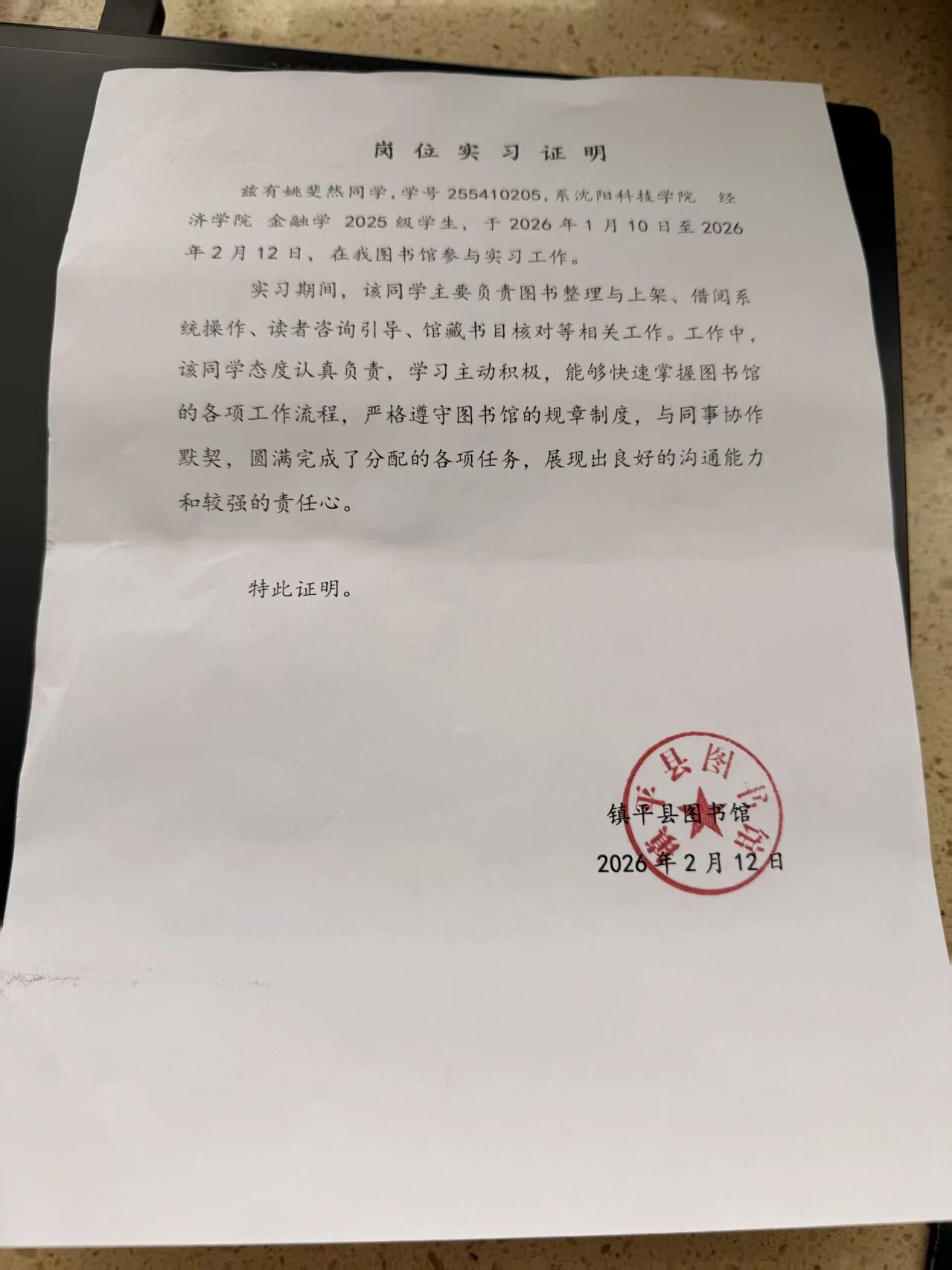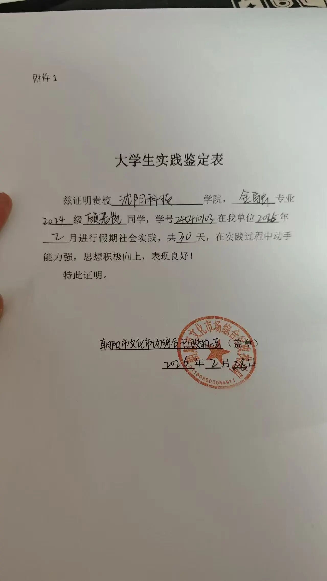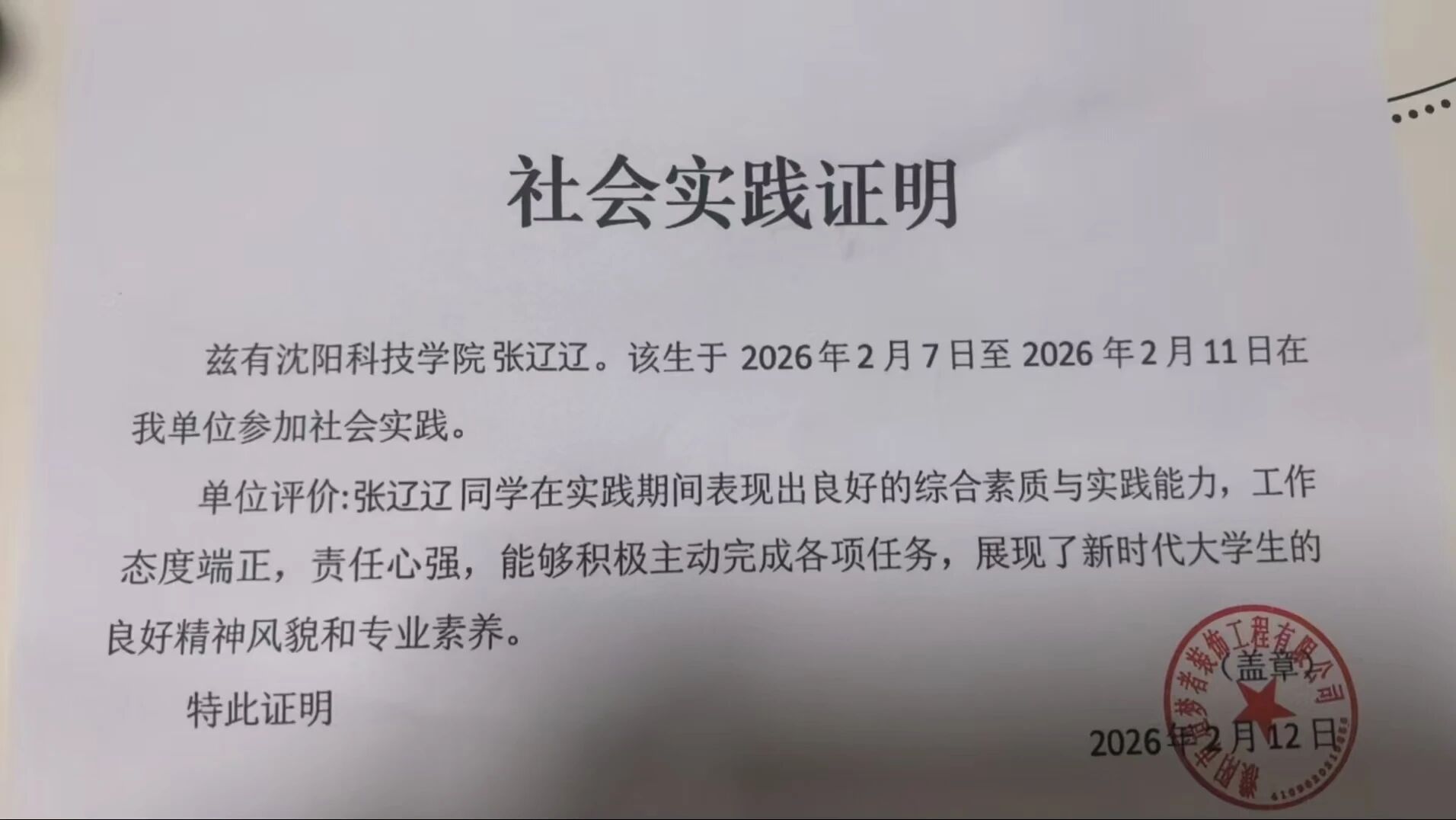 本次实践让我走出校园、走进社会、扎根家乡,在实践中受教育、长才干、作贡献,不仅提升了个人综合能力,也增强了家国情怀、责任意识与服务意识。未来,我将继续保持踏实努力的学习态度与积极奉献的服务精神,不断提升自我,努力成长为有理想、敢担当、能吃苦、肯奋斗的新时代青年,用所学知识回报家庭、回馈母校、服务家乡、奉献国家。