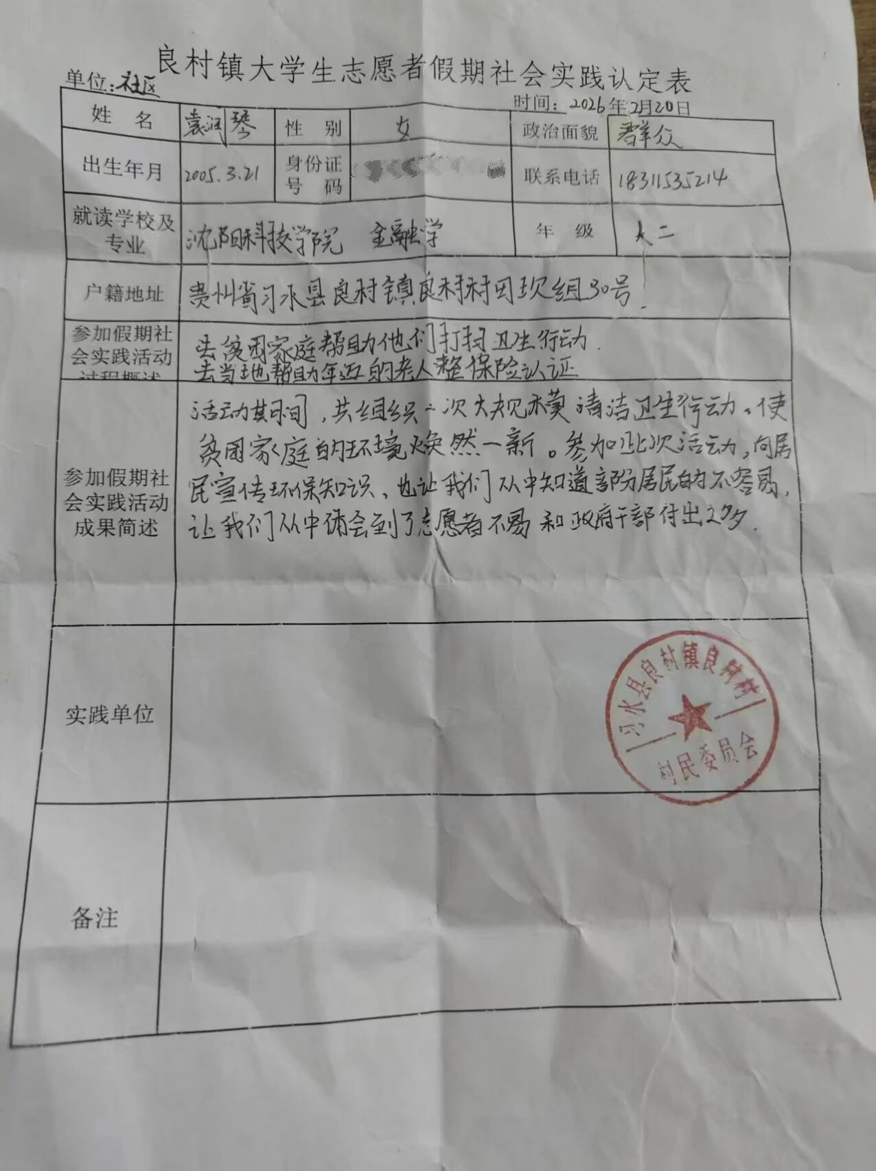实践地点:习水县良村镇