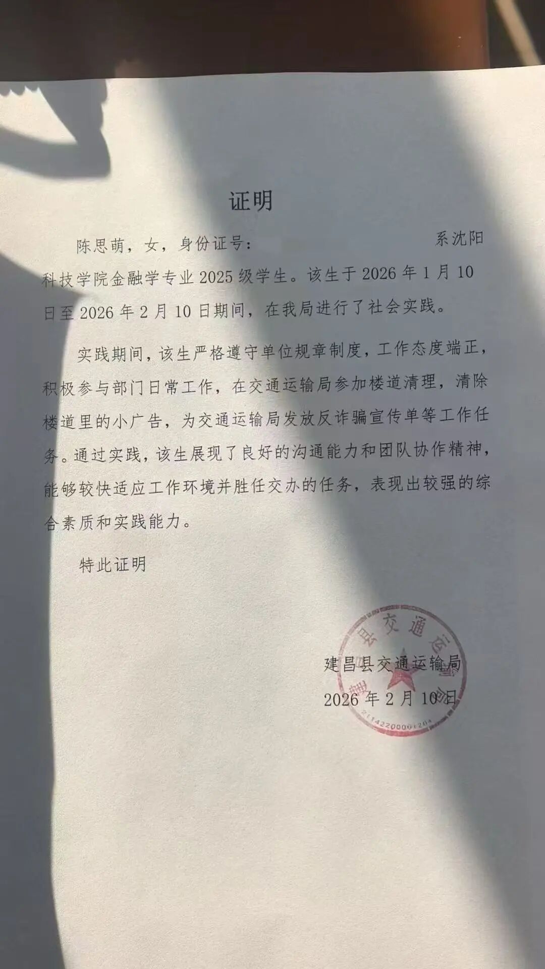 实践地点:建昌县交通运输局