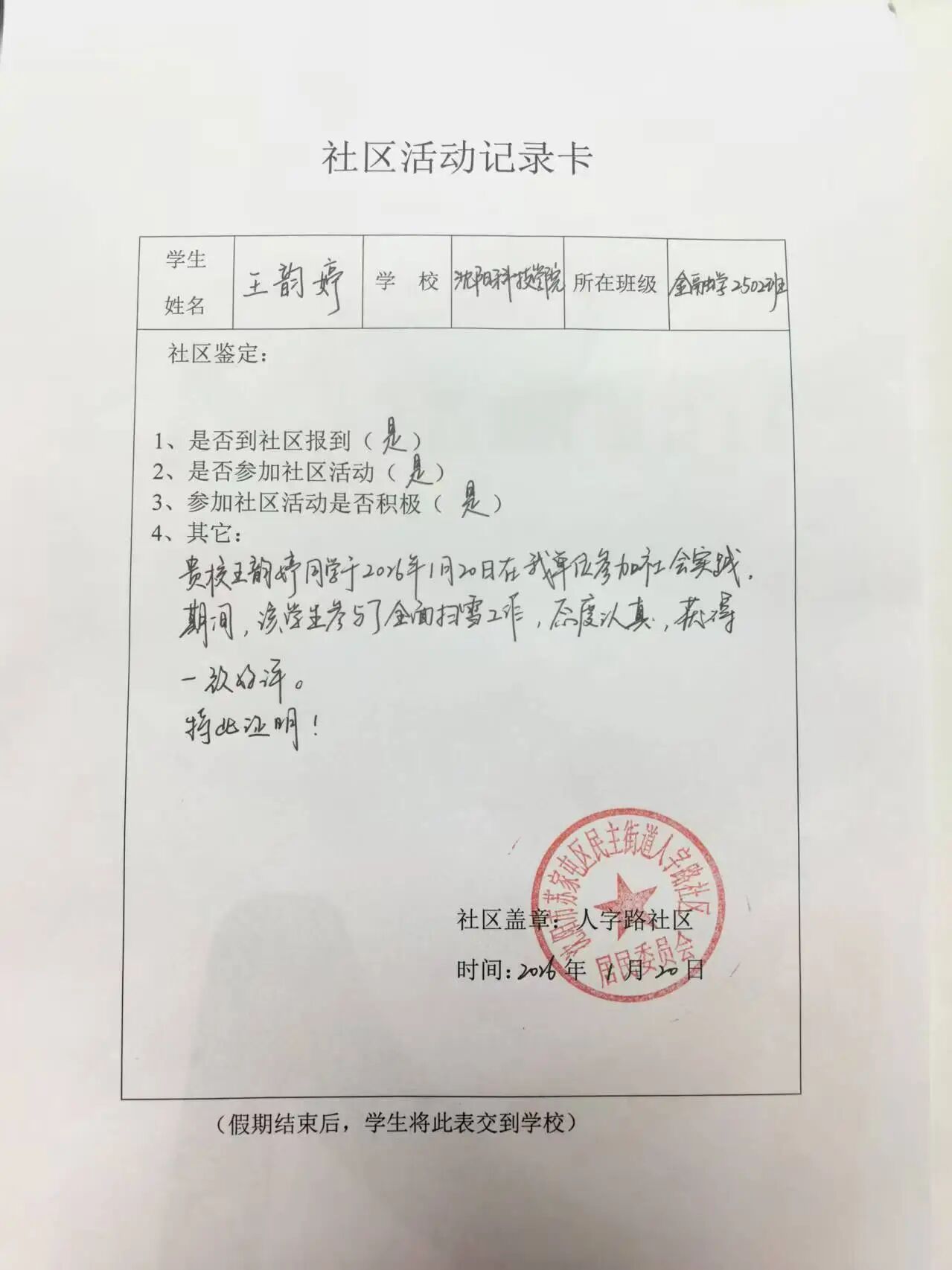 实践地点:沈阳市苏家屯区民主街道人字路社区