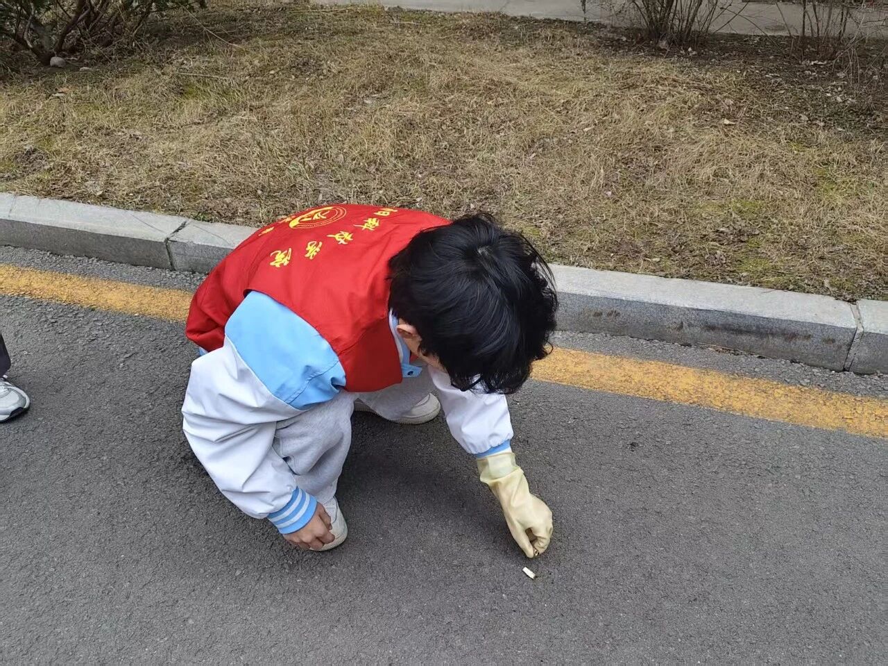 在清理过程中,志愿者们专注于烟头捡拾,用实际行动践行文明理念,以点滴行动带动身边同学共同维护校园环境,让“净校无烟痕”成为校园文明新风尚。