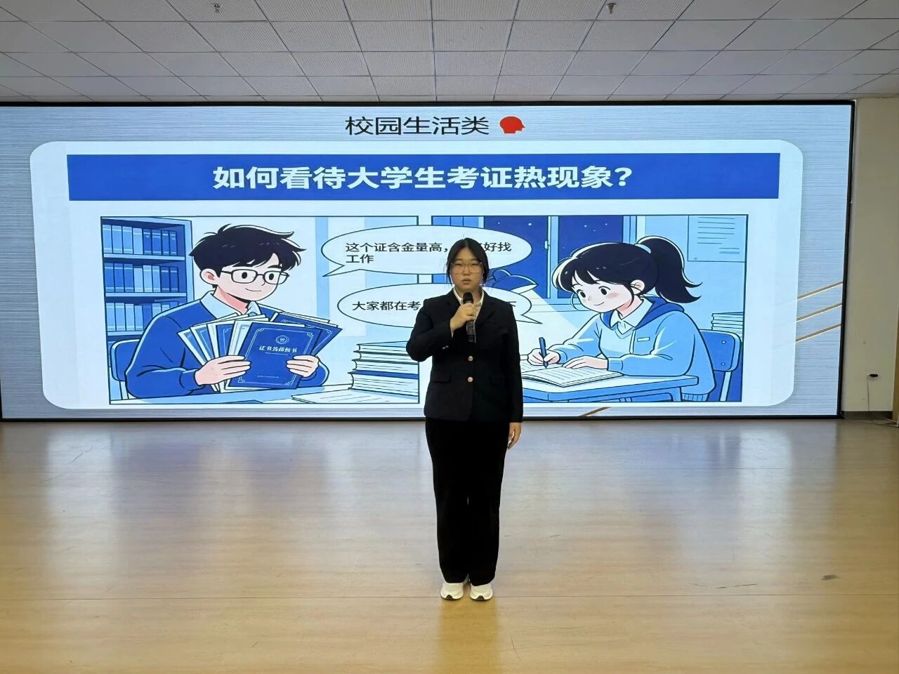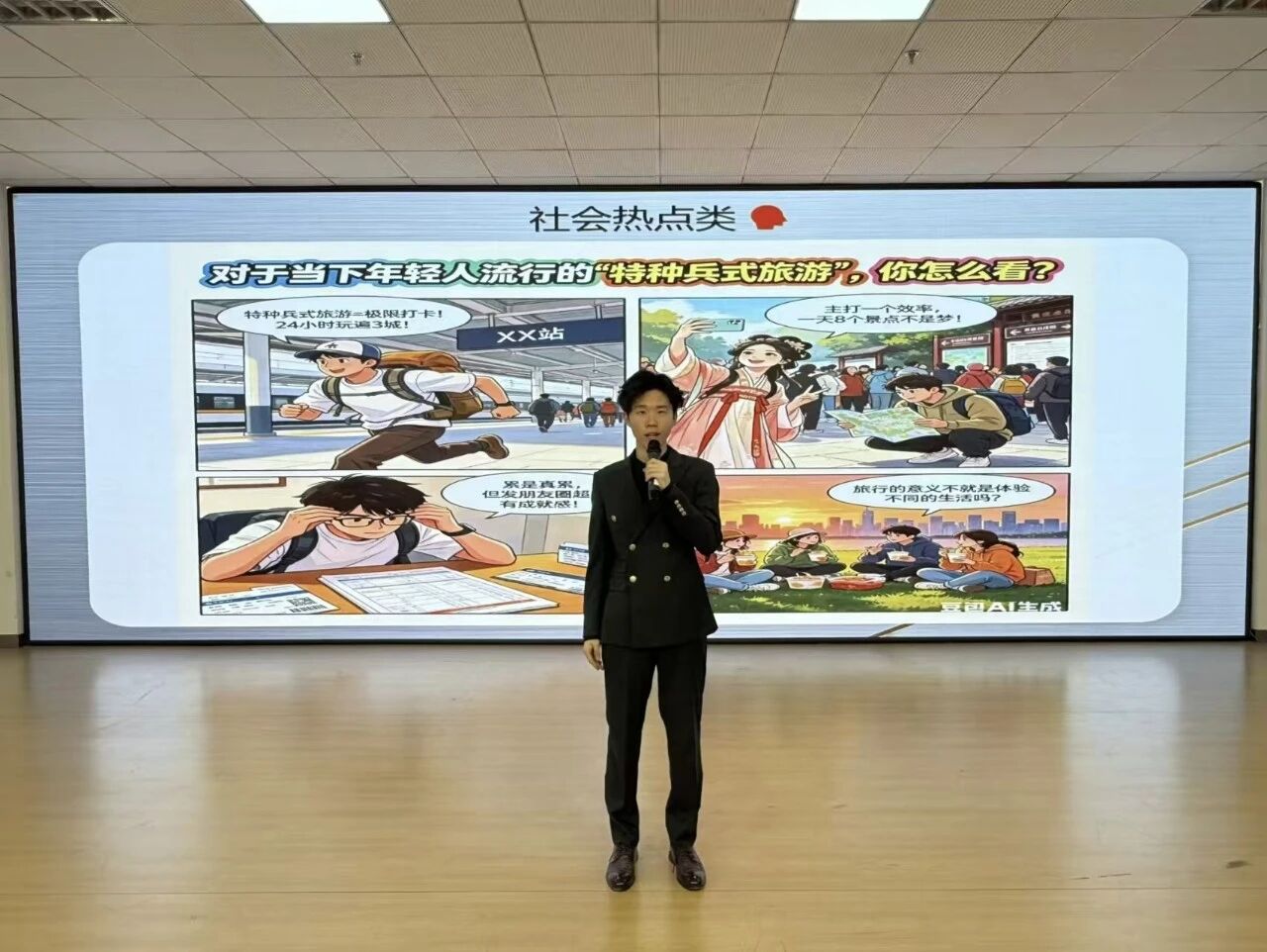 大赛设置三个环节,全面检验选手的语言功底、临场应变与综合素养,第一环节“声遇自我”,选手们情感真挚、沉稳大气、用独特风格传递个人魅力,为比赛拉开精彩序幕;第二环节“声临其境”即兴评述,选手现场抽选社会热点、校园生活、时代话题等题目,短时间内梳理思路、从容表达,展现出扎实的语言积累与敏锐的思辨能力;第三环节“模拟主持”现场抽题应变将比赛推向高潮,选手们随机抽取各类主持场景,快速进入角色,从容把控节奏、灵活应对突发状况,尽显专业主持风范。