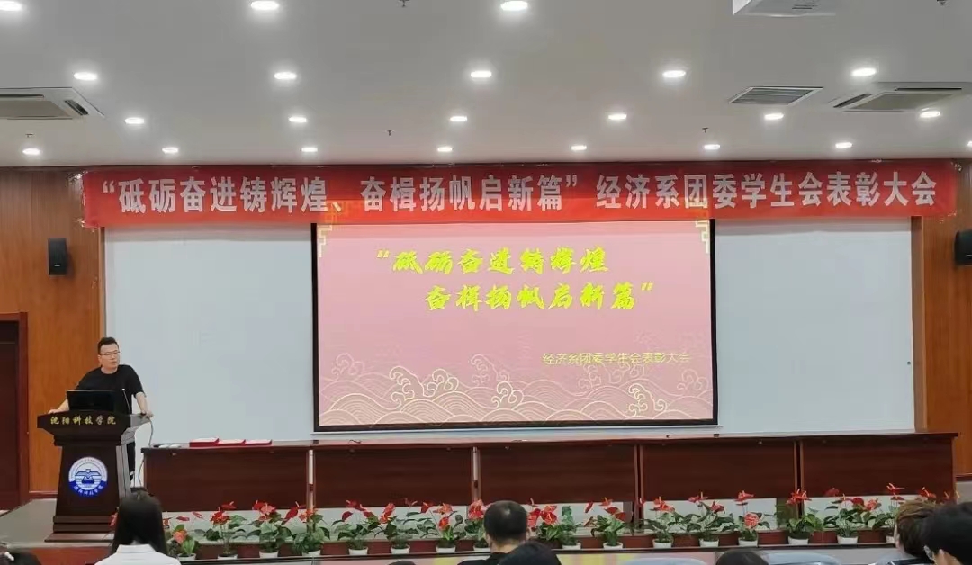 为总结经验、树立典型、表彰先进,7月3日,沈阳科技学院经济系在图书馆六楼报告厅隆重召开“砥砺奋进铸辉煌、奋楫扬帆启新篇”经济系团委学生会表彰大会。经济系党总支书记、学生工作副主任、2020级辅导员衣方丹,团委书记黎明东出席大会。经济系学生会成员全体参会。
