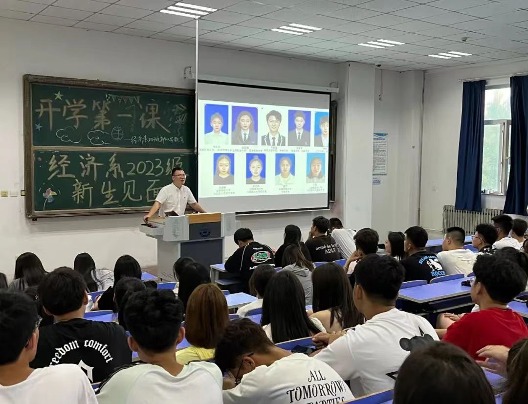 为切实做好经济系2023级新生入学教育工作,帮助同学们尽快适应新的学习生活环境,熟悉学校的各项管理制度,树立新生自我管理,明确未来的学习目标,切实维护好学校开学初安全稳定的良好局面;按照学生处统一部署,8月26日18时,经济系在二教201教室面向全体2023级新同学召开了新生入学教育大会暨“开学第一课”,经济系党总支书记衣方丹、2023级辅导员黎明东、新生助导参与了本次大会。