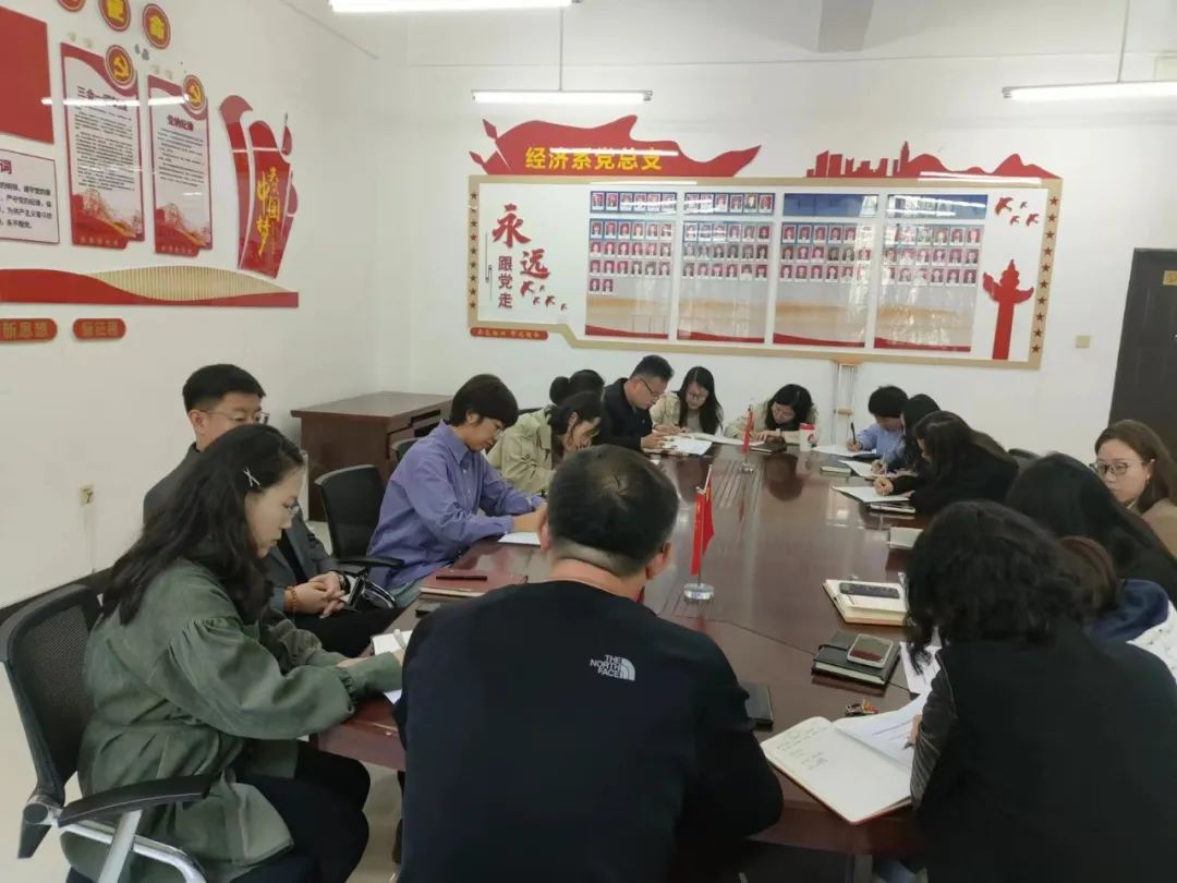 为深入开展学习贯彻习近平新时代中国特色社会主义思想主题教育,切实把思想和行动统一到习近平总书记重要讲话精神上来,经济系党总支于10月12日,在二教223党员活动室开展专题扩大理论学习。经济系党总支理论学习中心组成员参加会议,教师党员、民主党派同志列席会议,会议由系党总支书记衣方丹主持。