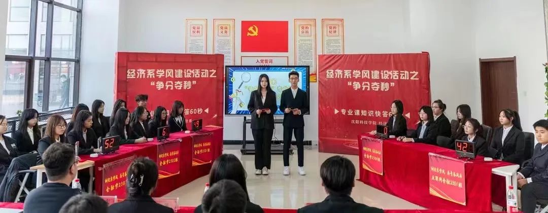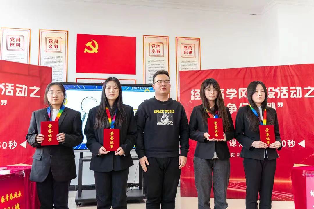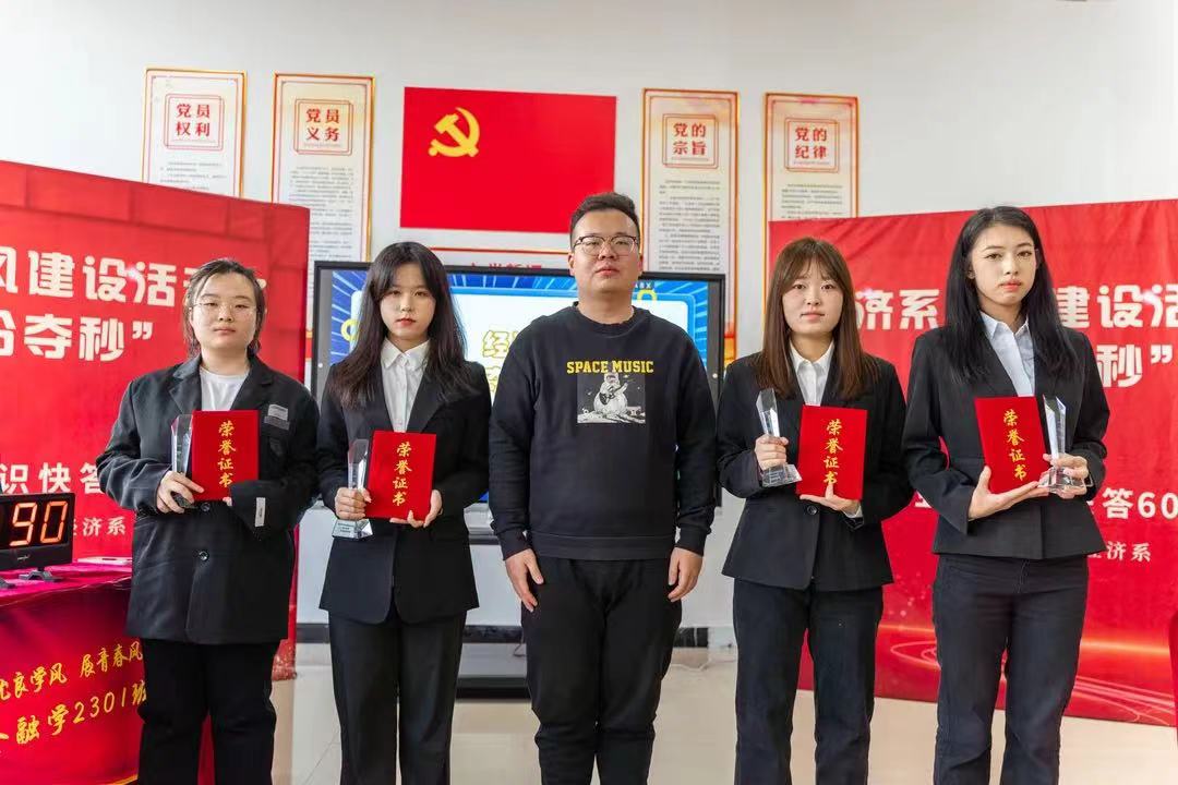 为进一步加强学风建设,营造良好的学习氛围,丰富学生的专业知识储备,促进专业知识的灵活运用,提高学生之间的交流与合作,加强班级的凝聚力、向心力。经济系于2023年12月12日13时在星海学生社区开展了“争分夺秒”专业课知识快答60秒专业课知识竞赛活动,经济系党总支书记衣方丹、经济系团委书记黎明东、专业课教师胡雅楠、冯家源参加了此次活动。