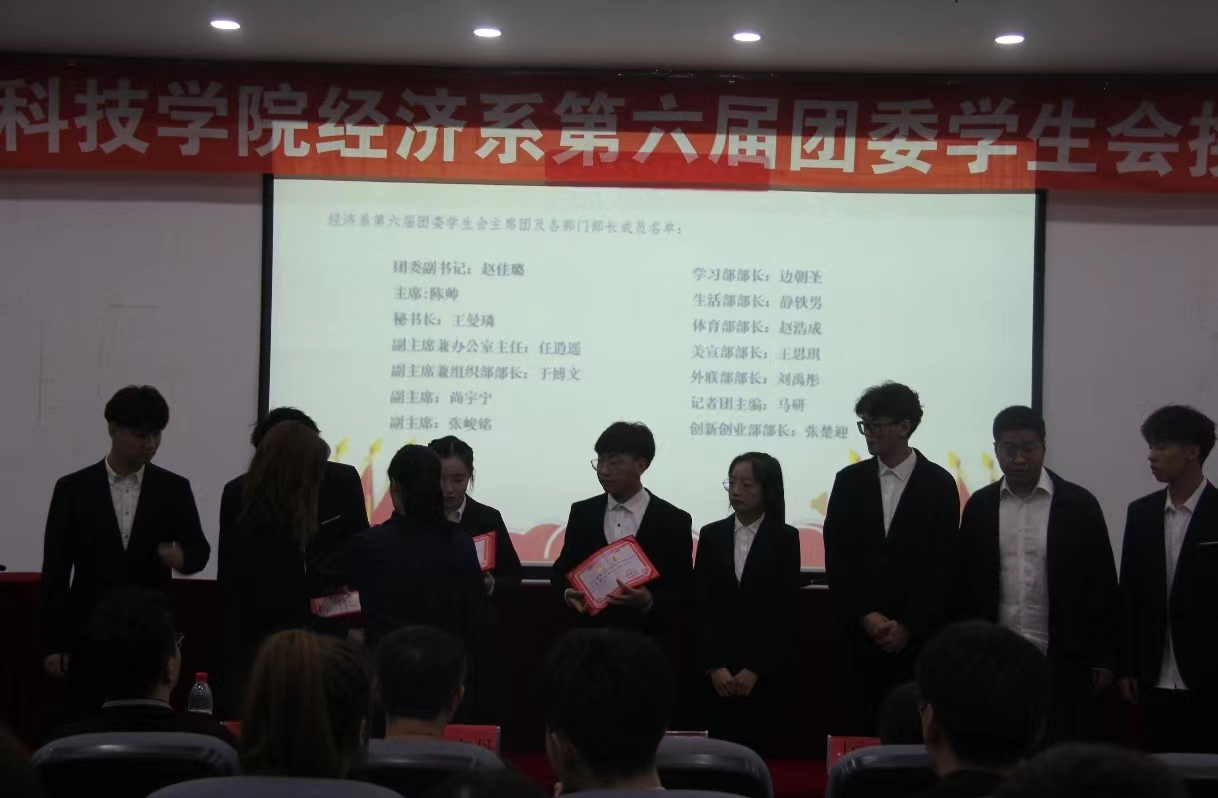 经前期学生干部递交的换届申请,和后期系内各位老师的资格审查,秉承公平公正公开的原则,研究汇总出经济系第六届团委学生会主席团及各部部长名单。安伊楠老师为他们颁发聘书并对他们寄予殷切期望。