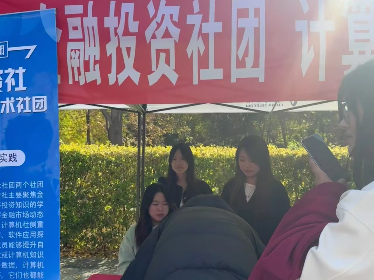 伴随着金秋的微风,10月16日下午经济系金融投资社团在图书馆门前开展了社团招新活动,活动吸引了众多金融爱好者报名。