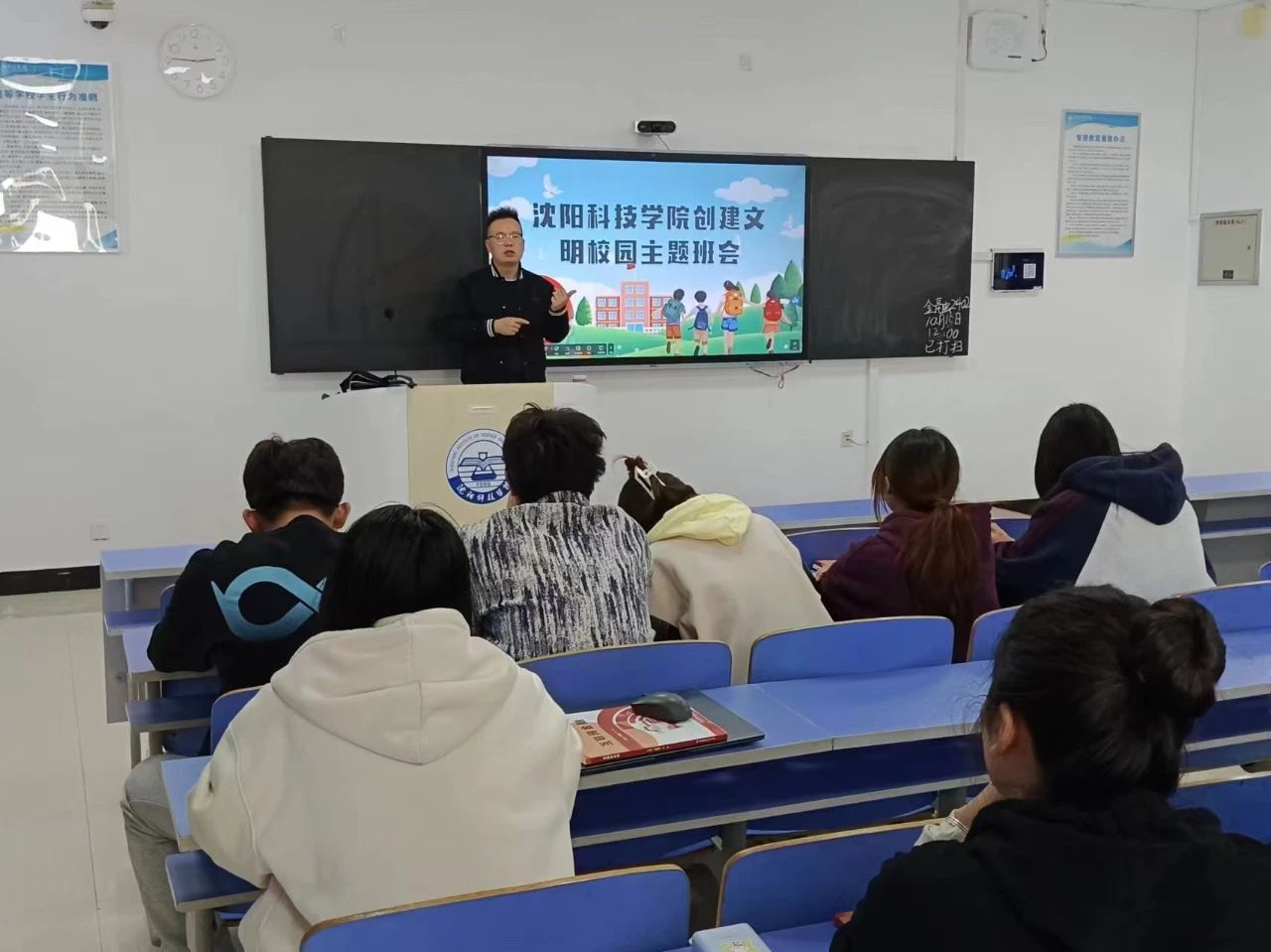 主题班会中,各年级辅导员分别从课堂文明、网络文明、举止文明、宿舍文明和用餐文明等方面倡导同学们积极投身于校园文明建设的工作中,努力践行社会主义核心价值观,自觉维护校园环境整洁,讲文明语,做文明事,从每一个人做起,切实增强文明校园的创建意识和责任意识,增强文明风尚进校园的使命感和责任感。班会结束后,学生们在“倡议书”上郑重签字,大家纷纷表示会积极响应校园文明建设,为创造文明校园贡献自己的一份力量。
