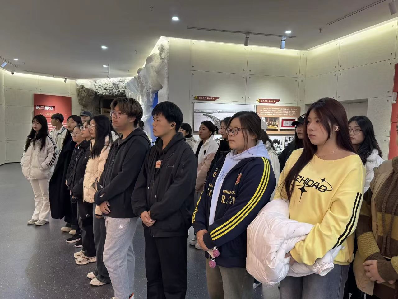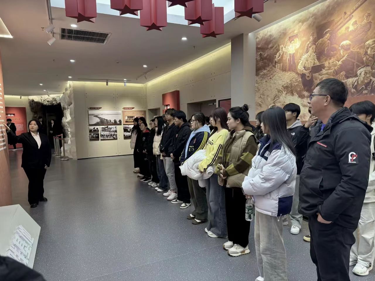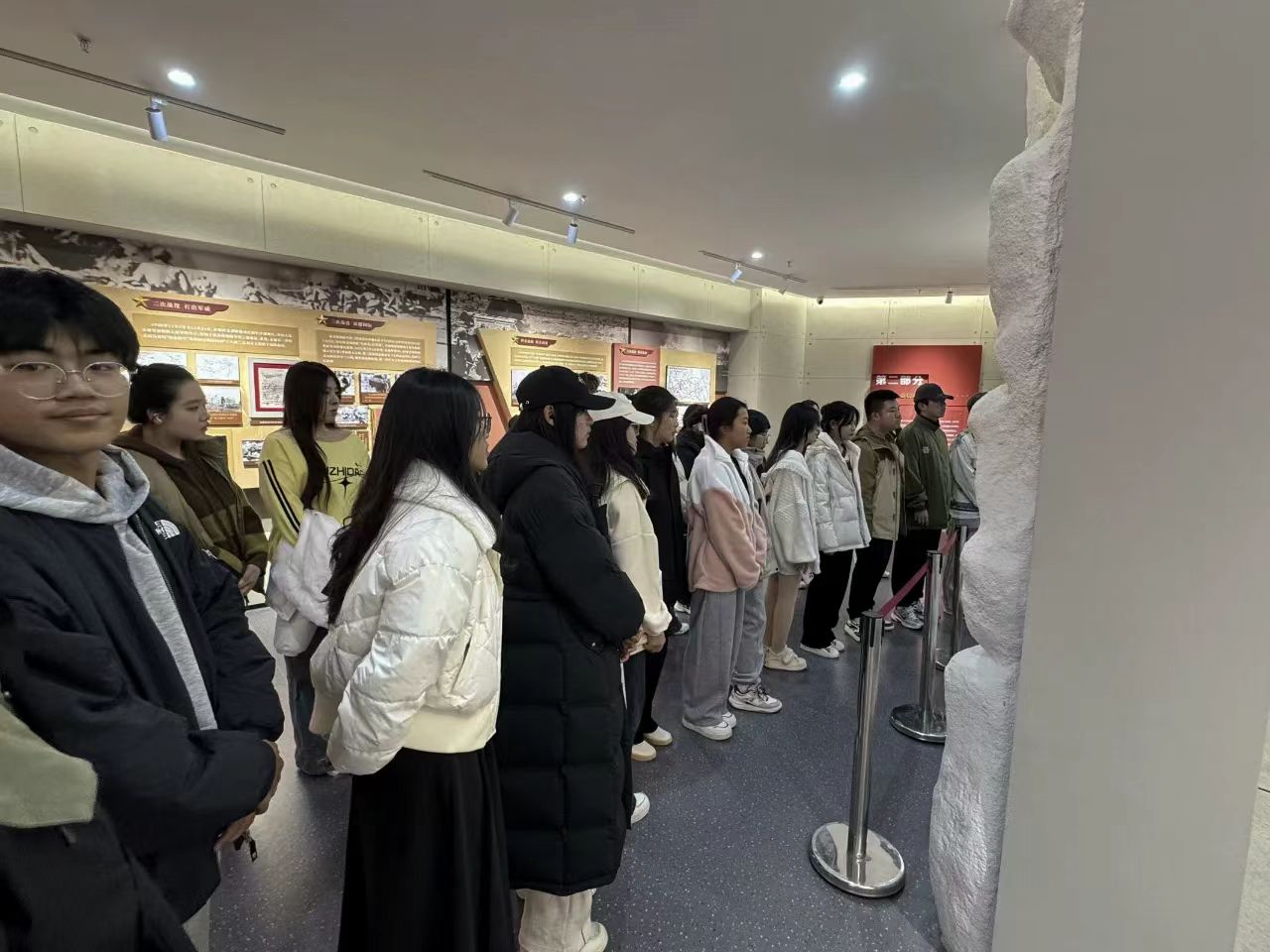 10月15日,经济系党总支书记、2024级辅导员衣方丹组织学生来到学校抗美援朝精神育人实践基地参观学习,经济系学子跟随讲解员循着历史的足迹依次参观,感受抗美援朝战争的光辉历史,追忆革命先辈艰苦卓绝的奋斗历程,感悟志愿军舍生忘死、英勇无畏的革命精神,师生怀着对先烈的无比敬仰,瞻仰革命先辈的英雄事迹,一张张老照片、一件件陈列展品带领大家回顾了抗美援朝战争中志愿军烈士保家卫国的英雄壮举,追忆革命先辈艰苦卓绝的奋斗历程,深切感受中国人民志愿军的英雄事迹。此次参观学习使师生们接受了一次生动形象的爱国主义教育,深刻体会到战争年代革命先烈的坚强与勇敢,使大家更加懂得要珍惜和平年代的生活,大家纷纷表示将牢记历史,继承和学习革命先烈们崇高的思想和坚定的理想信念,以更加饱满的热情投入到今后的工作和学习当中,肩负使命,笃定前行。