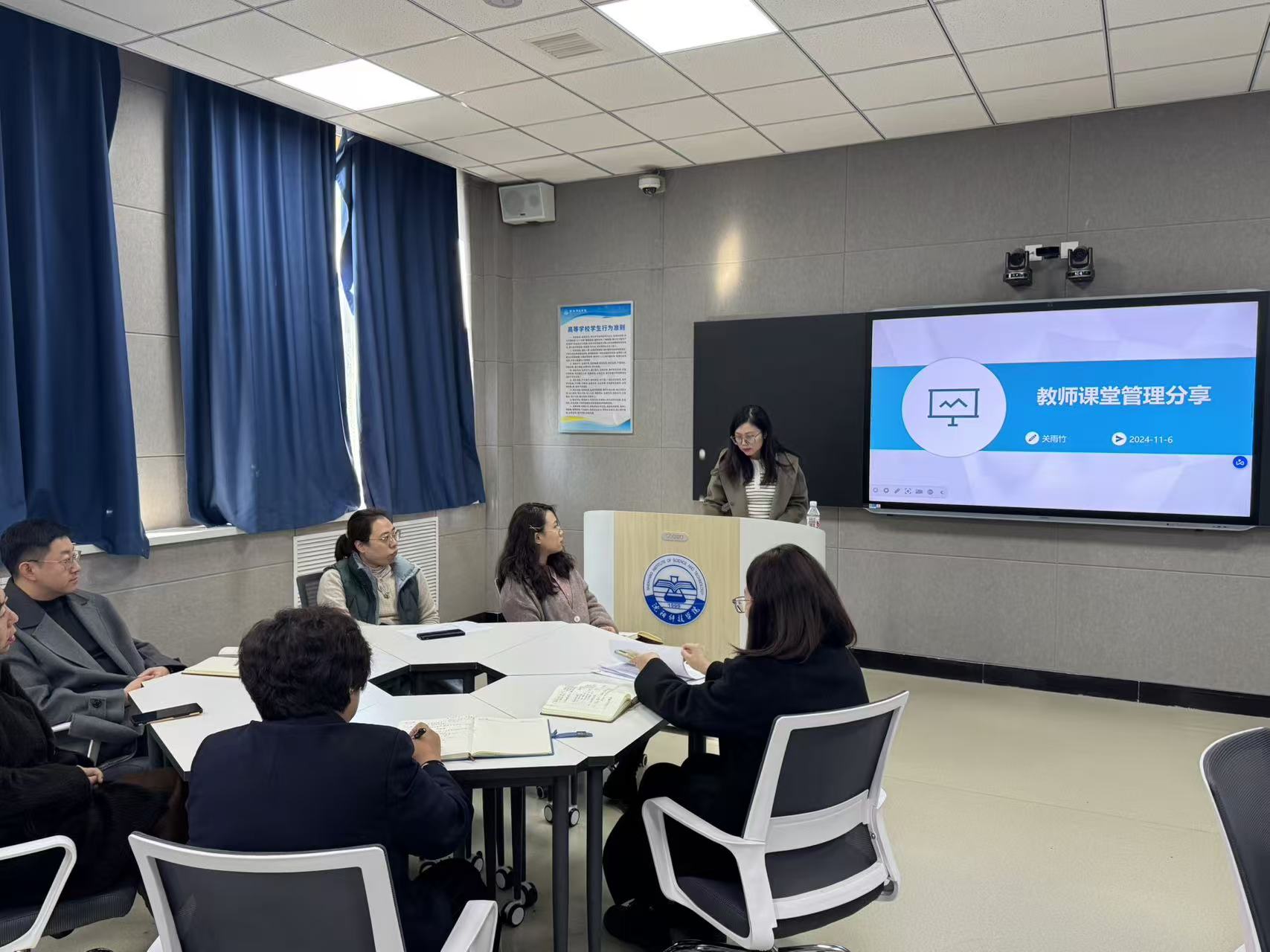 随后,来自金融教研室、互联网金融教研室、数字经济教研室的五位教师,分别就自己在课堂教学中总结的经验和感悟进行了细致入微的讲解和分享,这一互动交流环节,引发参会教师的热烈反响,大家围绕如何进行有效的课堂管理这一话题展开研讨。