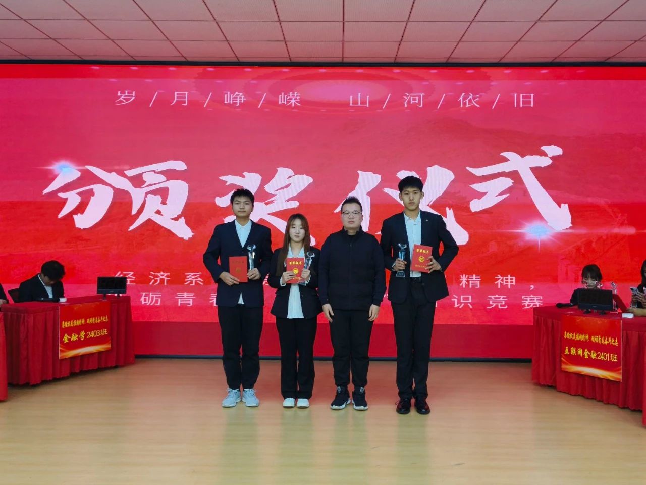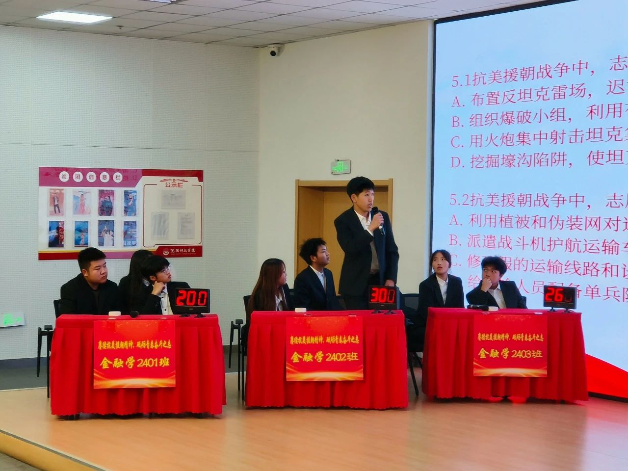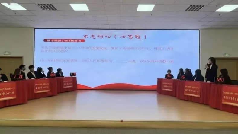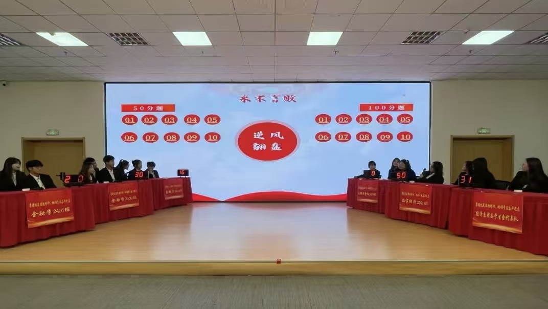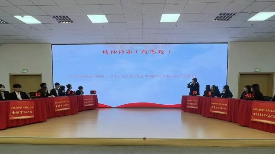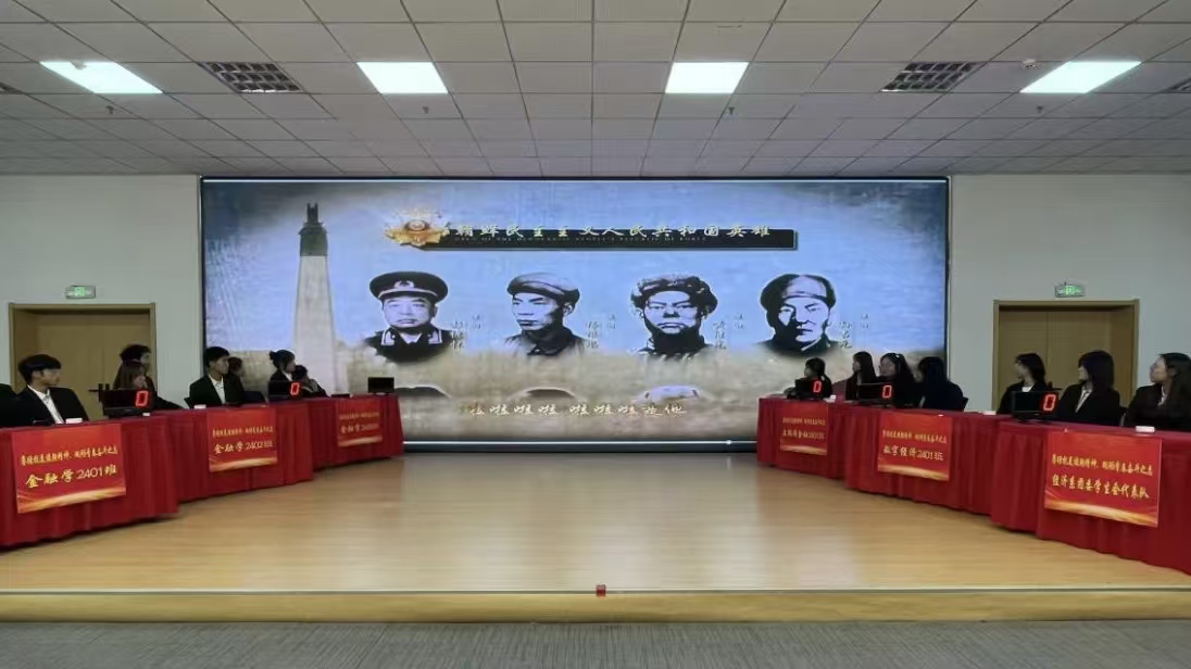 比赛开始前,师生共同观看了《抗美援朝保家卫国》纪录片,再一次重温了那段难忘的峥嵘岁月;参赛分为6组,每支队伍三名选手参赛,比赛环节分为不忘初心(必答题)、精神传承(抢答题)、永不言败(翻盘题),竞赛内容涵盖了抗美援朝战争的历史背景、重要战役、英雄人物等知识,活动现场选手们沉稳冷静从容应对,凭借扎实的知识储备,快速准确地作答,现场氛围紧张激烈,赢得台下观众阵阵掌声,学生们在轻松愉快的氛围中增长知识的同时,也进一步加深了大家对抗美援朝历史常识的认识理解;最终,金融学2402班荣获冠军;互联网金融2401班荣获亚军;经济系团委学生会代表队荣获季军;金融学2401班、金融学2403班、数字经济2401班获优秀奖。
