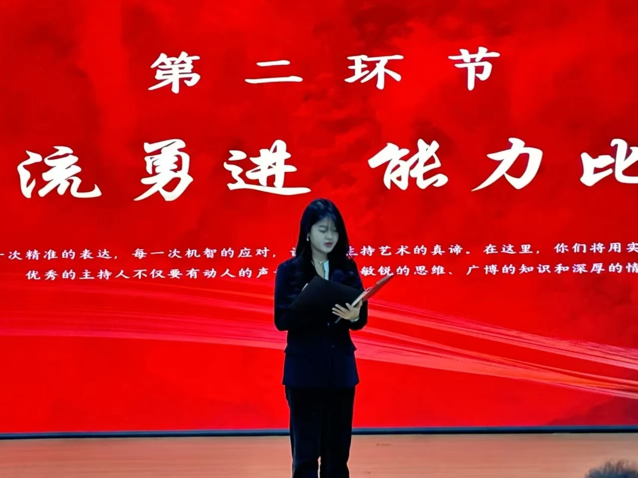 此次比赛分为风采展示、能力比拼、即兴主持三个环节,选手们各展风采,在比赛中展现出随机应变的本领和活跃的思维,评委们秉持着公平、公正的原则,严格遵守评选规则与标准,对比赛的每一个环节进行了打分。