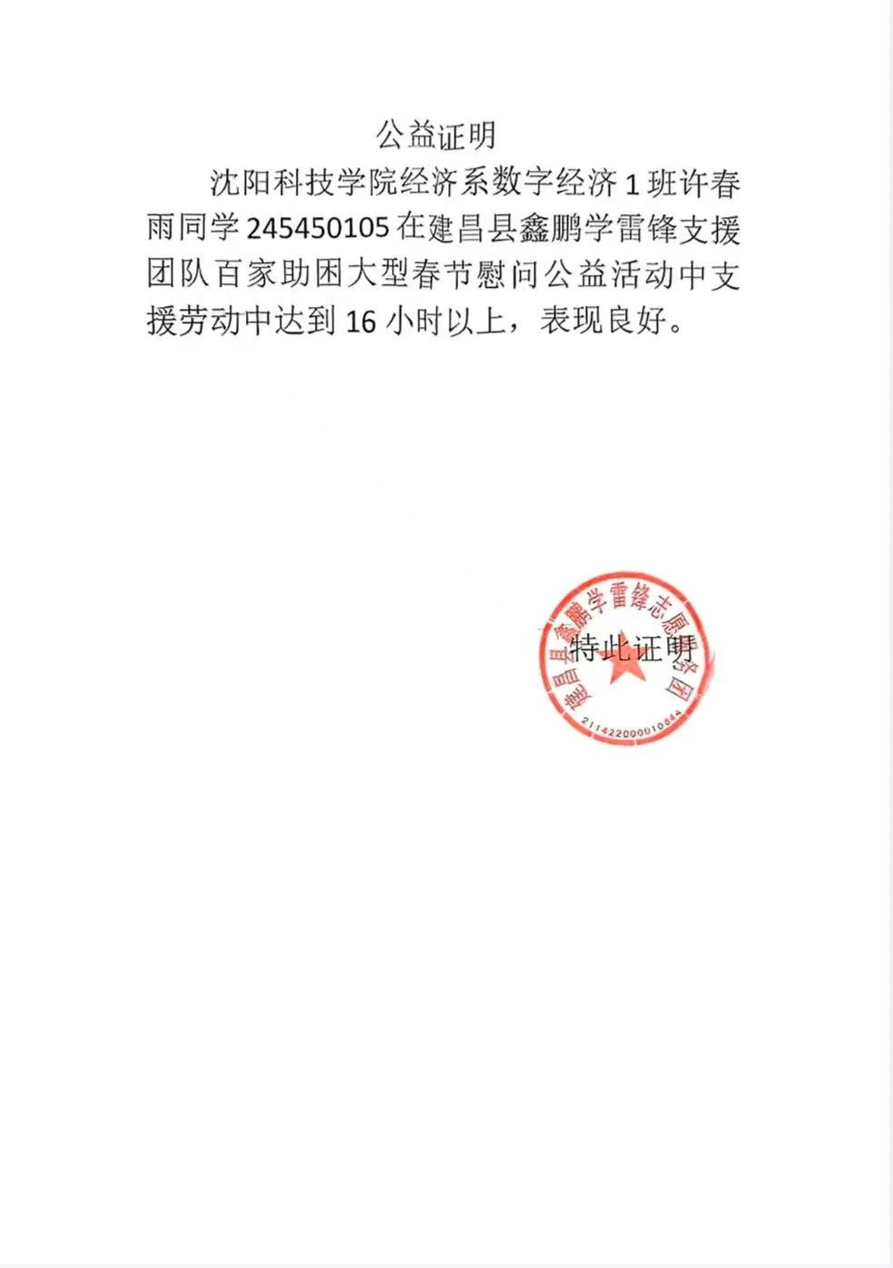 实践地点:建昌县鑫鹏学雷锋志愿服务团支部委员会实践照片: