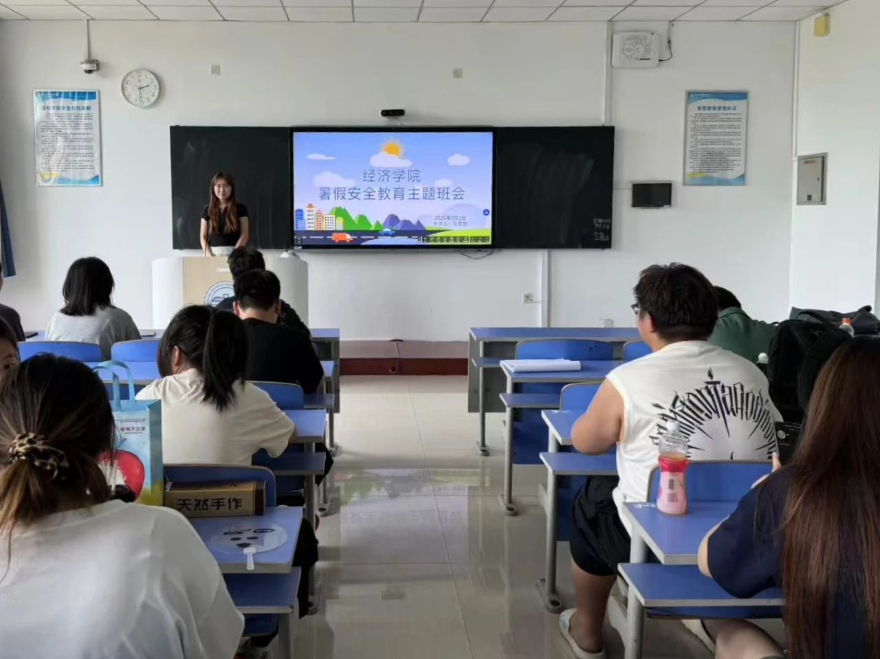 会上,各年级辅导员从交通安全、人身安全、食品安全、消防安全、网络安全、防电信诈骗等方面详细开展宣传教育,叮嘱学生在假期期间要保持良好的生活习惯和学习状态,鼓励学生合理规划假期时间,积极参加社会实践活动,增强社会责任感,既要享受假期带来的轻松与愉悦,也不要忘记学习进步和个人成长。