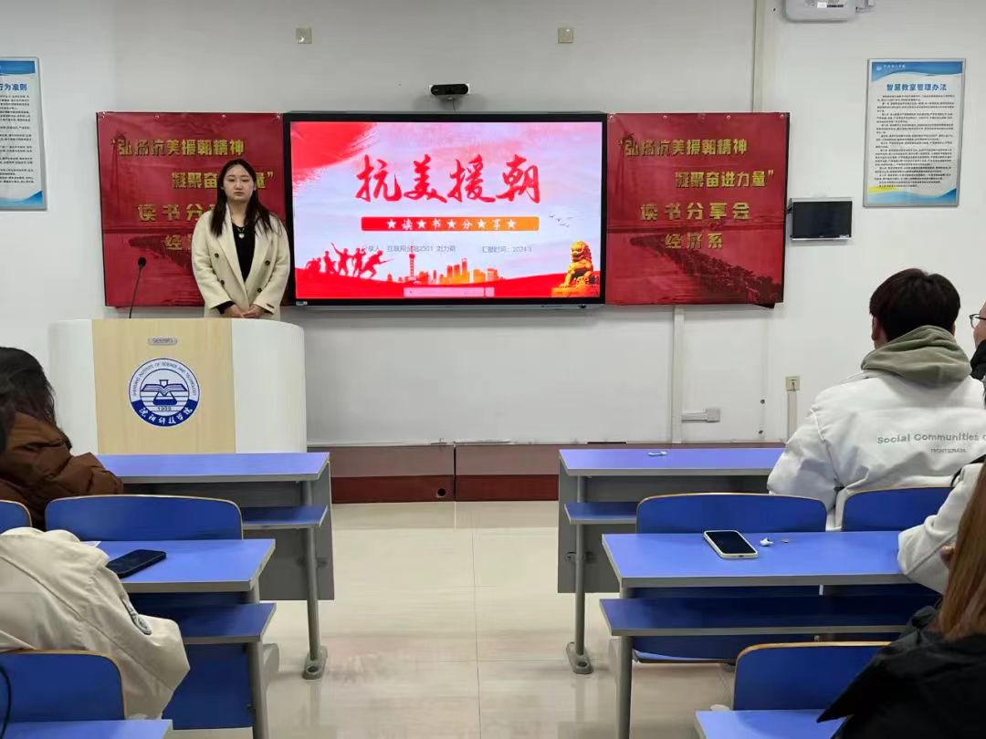 为深切缅怀革命先辈,弘扬爱国主义精神,深入学习并发扬抗美援朝精神和伟大的爱国主义精神,进一步传承红色基因,汲取奋进力量,3月12日经济系以“弘扬抗美援朝精神凝聚奋进力量”为主题在二教217开展了读书分享会。 活动现场,学生们通过PPT、视频、演讲等多种形式,分享自己在假期读书的心得体会,讲述着抗美援朝战争的红色故事和伟大抗美援朝精神,一段段生动的故事展现出战斗英雄坚定的革命意志、顽强的战斗......