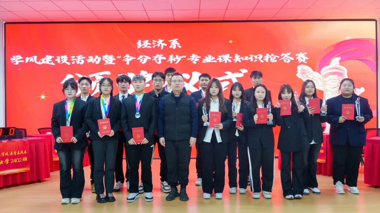 为进一步加强学风建设,营造良好的学习氛围,丰富学生对专业课程知识的储备,促进专业知识的灵活运用,提高学生之间的交流与合作,增强班级的凝聚力、向心力。经济系于2024年11月12日在图书馆东617活动室开展了“争分夺秒”专业课知识抢答赛,经济系团委书记黎明东参加了此次活动。 参赛分为5组,每个班级选派三名代表参赛,比赛内容包括:初露锋芒(必答题)、争先恐后(抢答题)、绝处逢生(翻盘题)、势均力敌(......