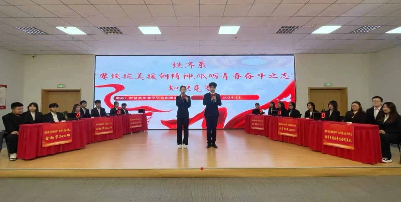 为传承和弘扬伟大抗美援朝精神,扎实开展好“五学五做”,培养学生家国情怀,树立远大志向,时刻牢记先烈的光荣事迹;经济系于11月19日在图书馆东区617活动室开展“赓续抗美援朝精神、砥砺青春奋斗之志”知识竞赛,经济系团委书记黎明东参加了此次活动。 比赛开始前,师生共同观看了《抗美援朝保家卫国》纪录片,再一次重温了那段难忘的峥嵘岁月;参赛分为6组,每支队伍三名选手参赛,比赛环节分为不忘初心(必......