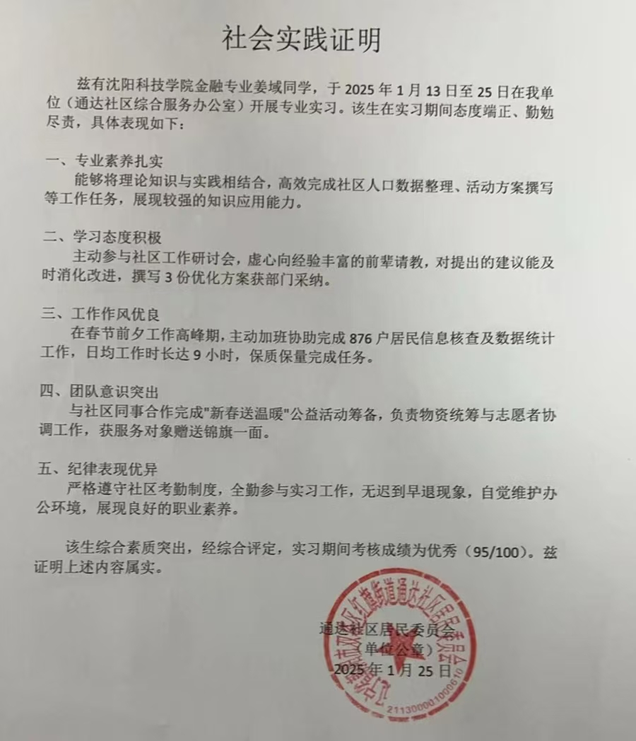 这次通达社区的社会实践,是我人生中一段宝贵的经历。它让我走出书本知识的局限,深入到社会基层,了解民生百态,感受人间冷暖。我将永远铭记这段经历,带着这份收获和成长,勇敢地迈向未来的人生道路。