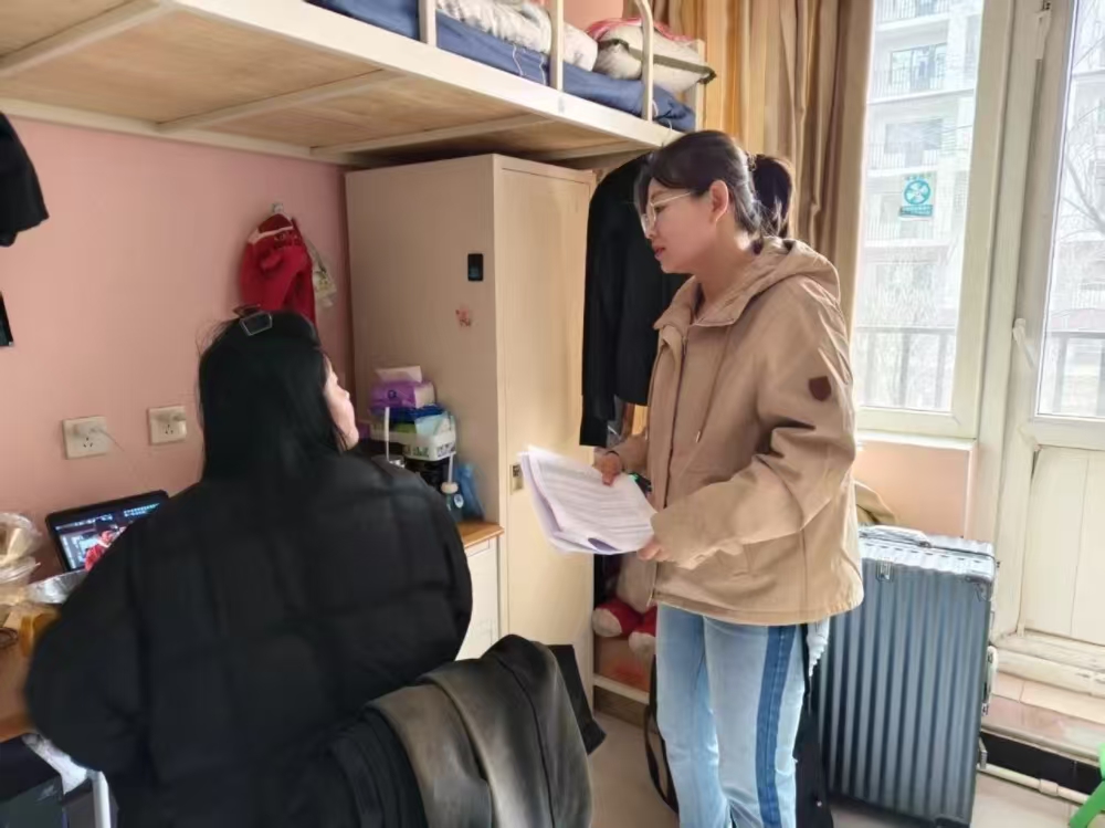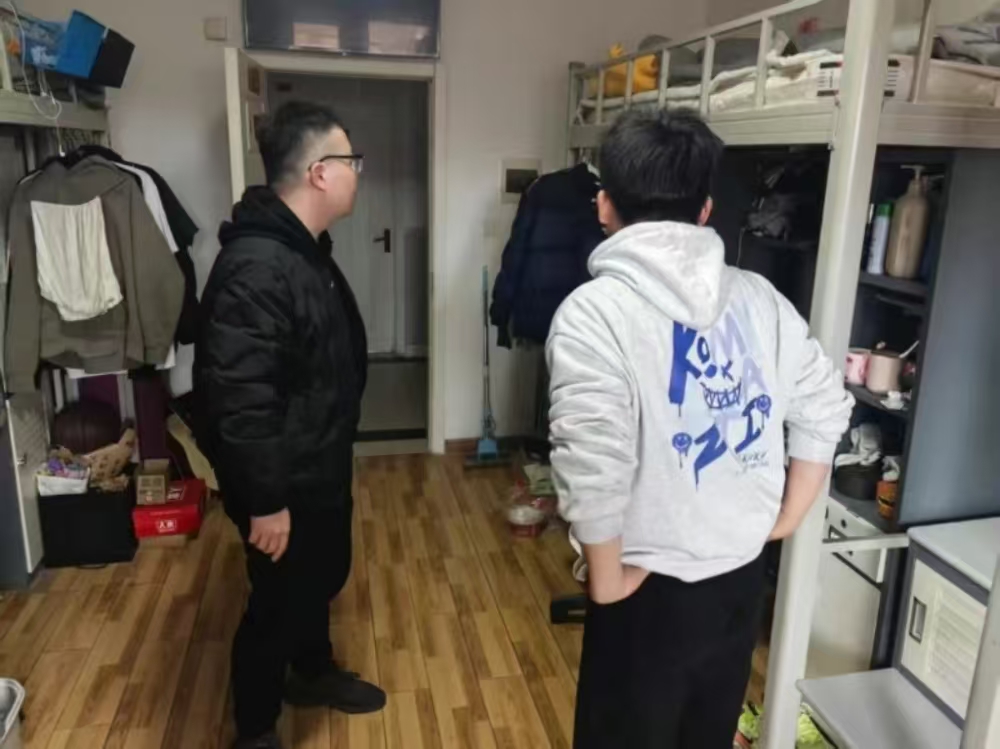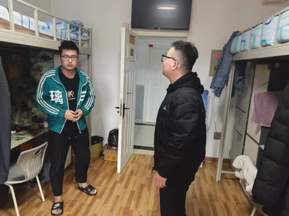 在走访过程中,辅导员们与学生亲切交谈,询问了大家的学习计划、生活状态,认真倾听了学生们的心声,对于学生遇到的困难,辅导员给予了耐心的解答和指导,鼓励大家积极面对挑战,合理规划时间,努力提升自我。同时,辅导员们还特别关注了寝室安全用电和卫生情况,提醒学生们杜绝使用违规电器,保持寝室整洁,共同营造一个安全、舒适的生活环境;此外,针对当前的季节特点,辅导员还叮嘱学生们做好个人防护,保持良好的生活习惯,预防春季传染性疾病。