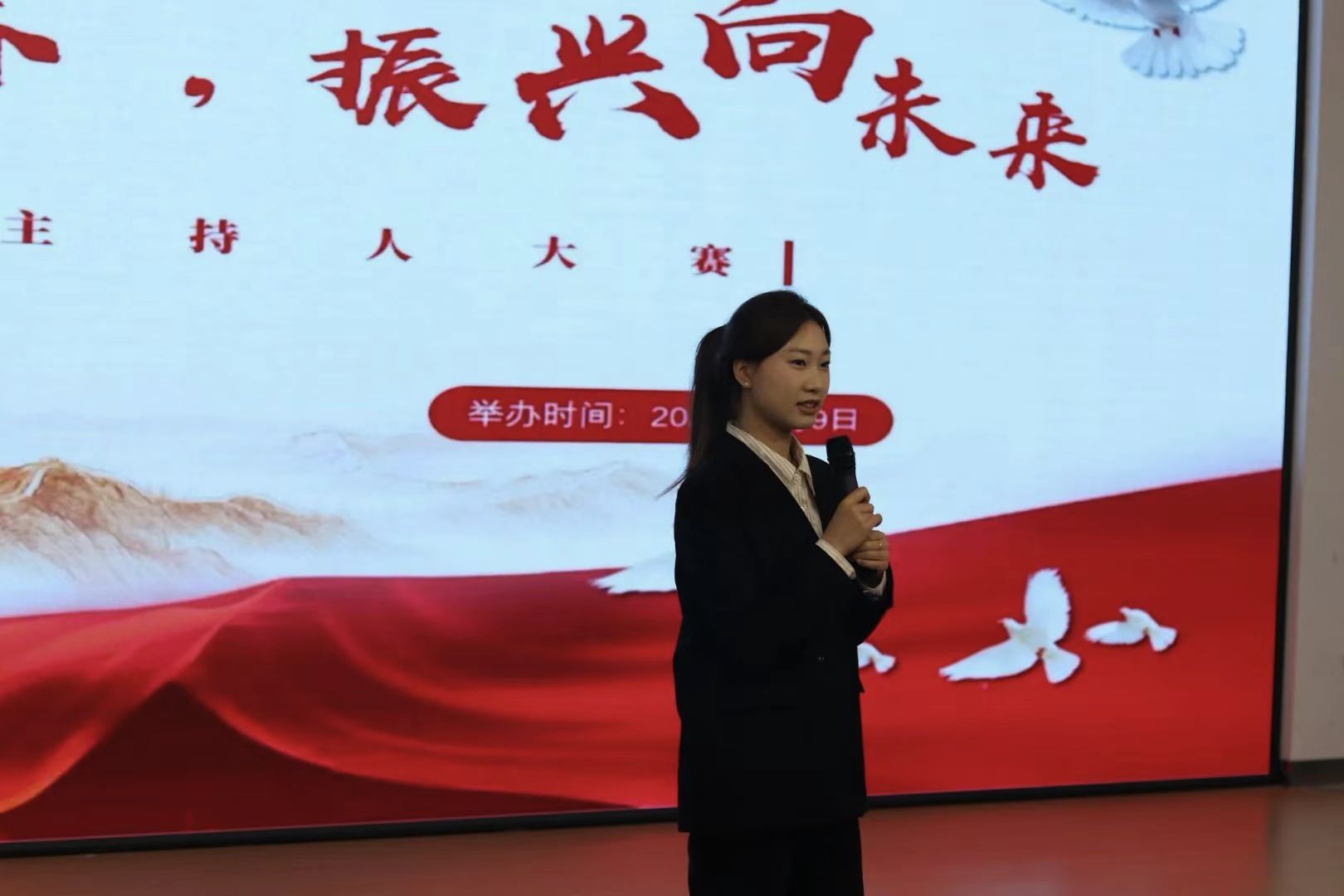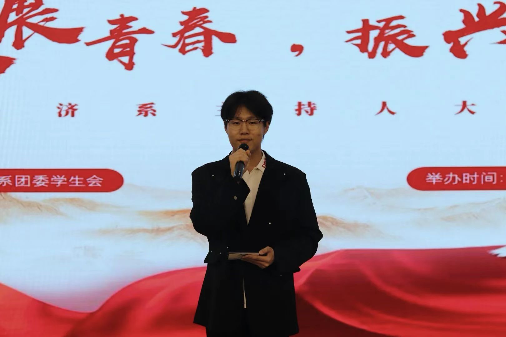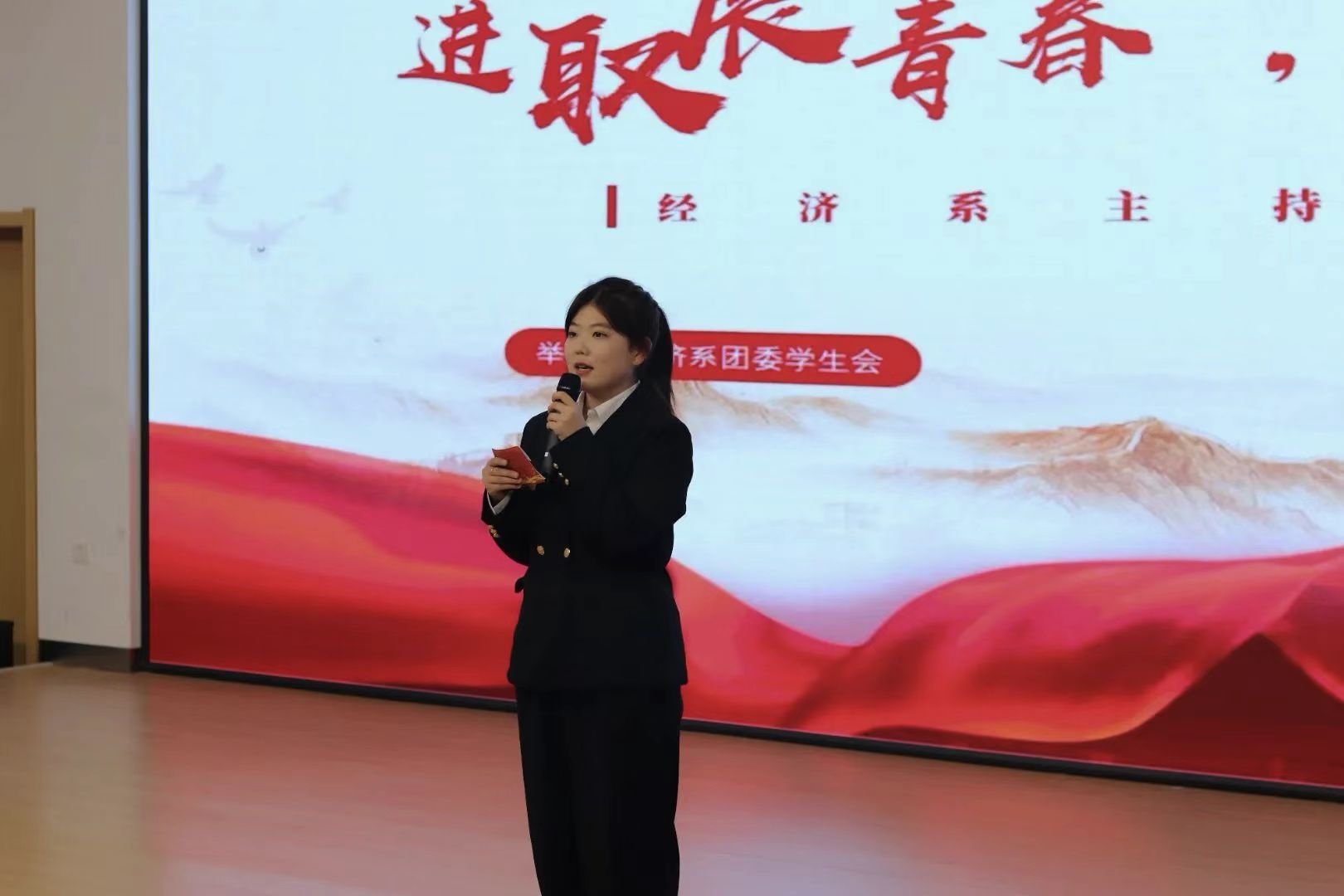 为展现大学生的青春风采和昂扬向上的精神风貌,经济系于4月9日17时在图书馆617活动室开展了“进取展青春,振兴向未来”主持人大赛,活动吸引了众多怀揣梦想的学生报名参加,经济系2022级辅导员马雯放作为评委出席了此次活动。